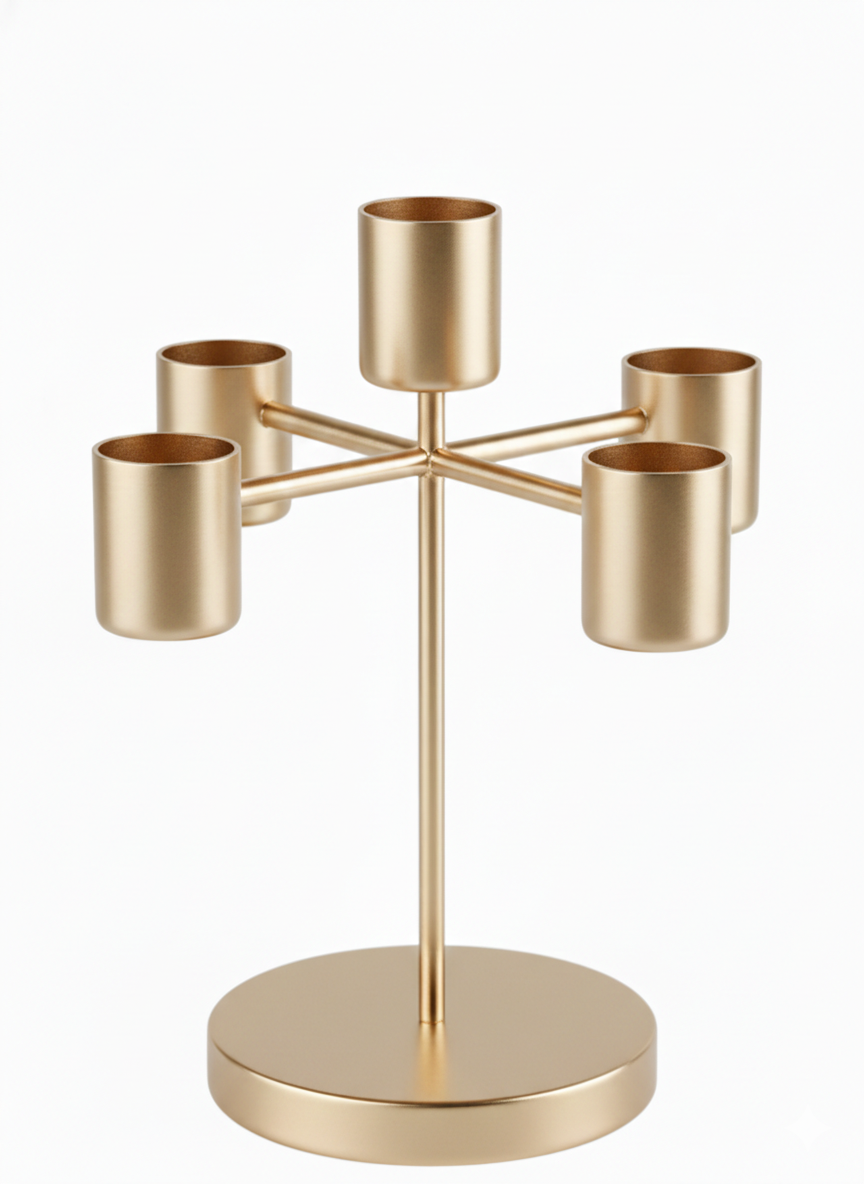Bring modern sophistication into your space with this Set of 2 Minimalist Metal T-Light Holders, thoughtfully designed to elevate everyday interiors. Featuring a sleek five-light structure and a soft champagne gold finish, these candle holders blend contemporary design with timeless elegance.