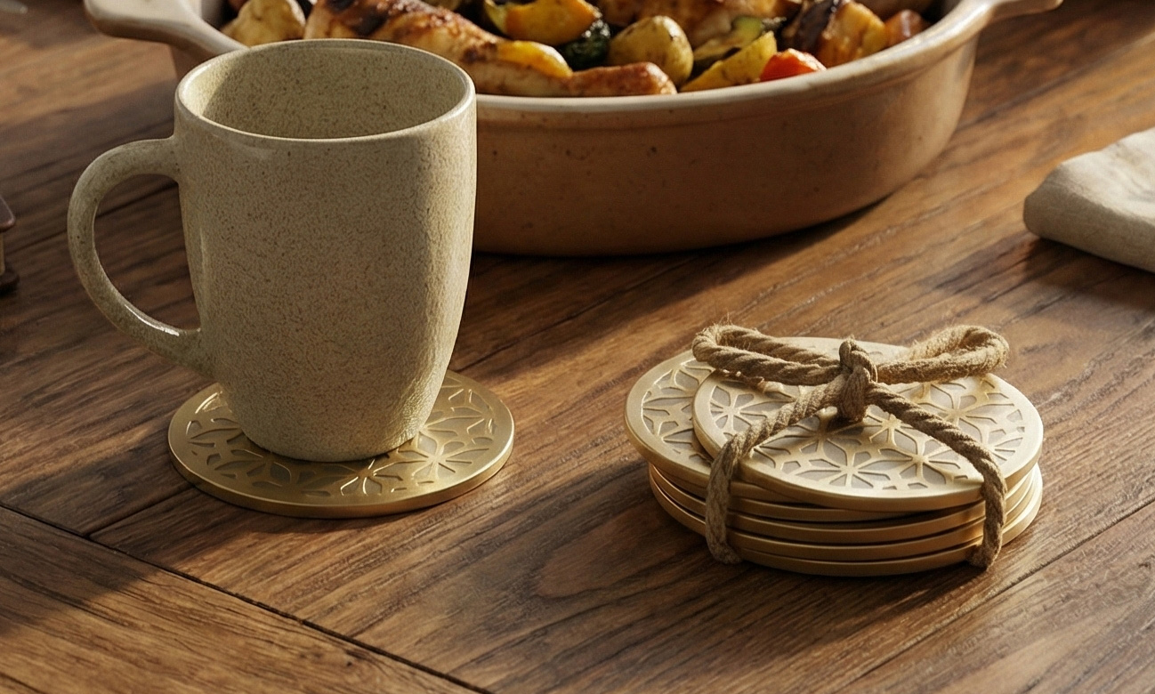 Heirloom Quality, Everyday Use Forget disposable coasters that wear out in a month. These are crafted from premium, heavy-duty metal, built to withstand heat, cold, and daily life. The finish is smooth to the touch yet resilient against scratches. We’ve packaged them with an earthy, artisanal touch—bound in natural jute rope—making them not just a purchase, but a delightful unboxing experience. Whether you’re upgrading your own home or searching for that perfect, thoughtful gift, these coasters deliver elegance that lasts. Upgrade your hosting game—add this set to your cart today.