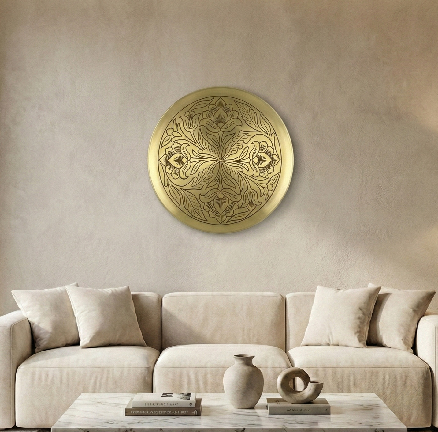 A Touch of Warmth for Your Workspace Transform your desk into a zone of inspiration. Picture this: it’s a quiet afternoon, your favorite coffee mug is resting on your study table, and just above your monitor, this gold wall plate catches the soft sunlight, casting a warm, motivating glow over your workspace. It provides the perfect visual break from your screen, adding a layer of texture and refinement to your office setup that boosts mood and productivity.