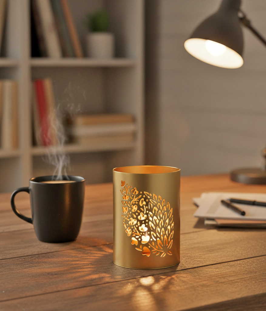 From Focus Mode to Festive Warmth This isn’t just a candle holder; it’s an atmosphere generator. Picture it beside your laptop during late-night work sessions, offering a calming, flicker-free companion that reduces screen fatigue. Envision it on a dinner table, creating an intimate, bistro-style vibe for two. Or, line them up for Diwali and Christmas—where the laser-cut patterns amplify the festive spirit, making your home feel curated, professional, and deeply welcoming. It bridges the gap between a modern “work-from-home” aesthetic and the traditional warmth of festive celebrations.