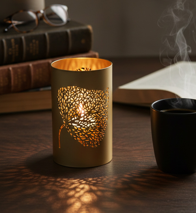 Transform Your Space into a Sanctuary Imagine closing your laptop after a long day, dimming the harsh overhead lights, and striking a match. As the flame settles into this Golden Leaf Votive Holder, your space is instantly bathed in a warm, honey-colored glow. The precision-cut leaf pattern doesn’t just hold light; it sculpts it, casting delicate, dancing shadows that mimic a quiet walk through a sunlit forest. Whether placed beside your favorite books in a reading nook or centering your coffee table, it adds a touch of “quiet luxury” that makes even a simple evening feel like a spa retreat.
